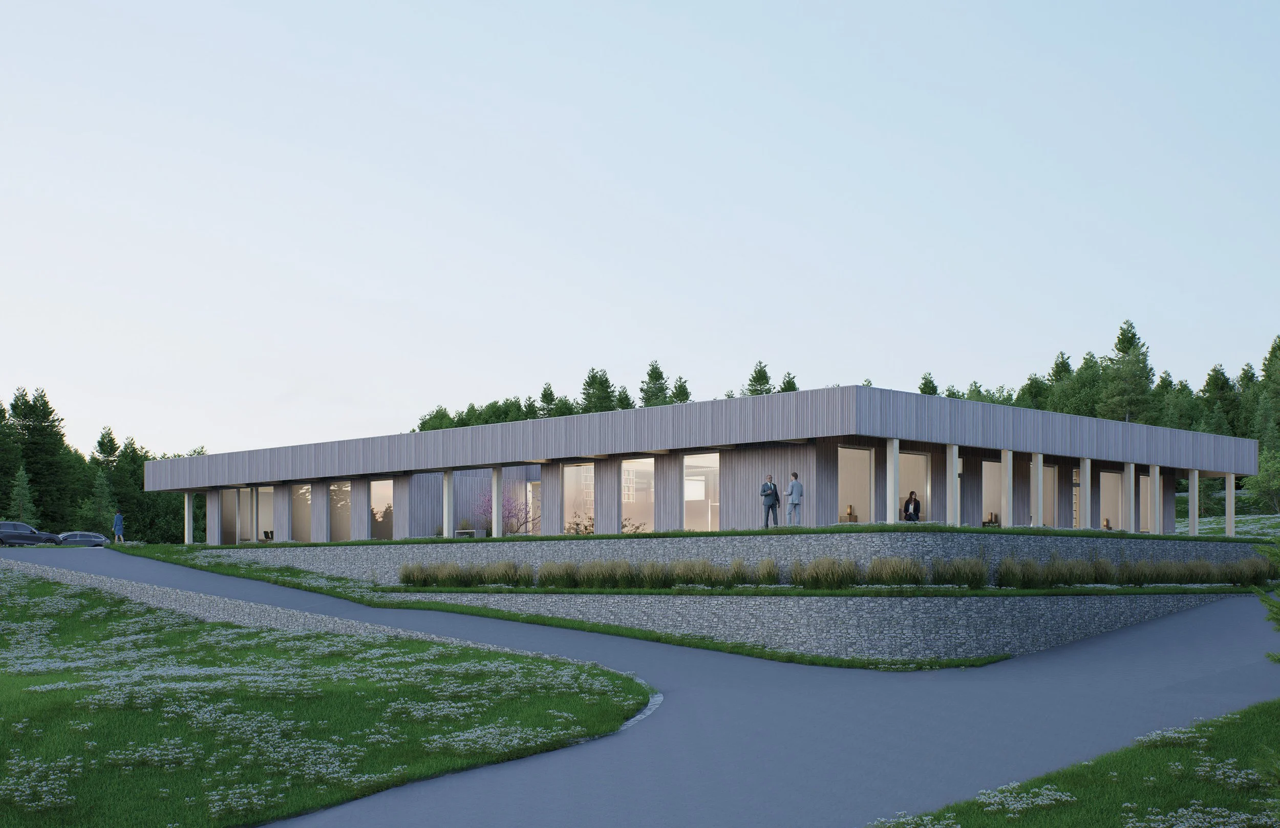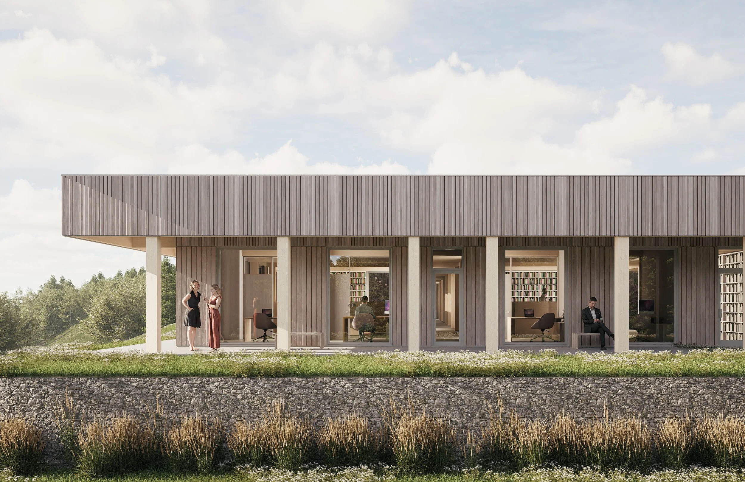 Le projet consiste en la conception d’un bâtiment de bureaux organisé autour d’une circulation claire et lisible, assurant à la fois confidentialité, confort et qualité des milieux de travail. L’architecture privilégie des espaces lumineux, ouverts sur l’extérieur, où chaque bureau bénéficie d’un lien direct avec le paysage.