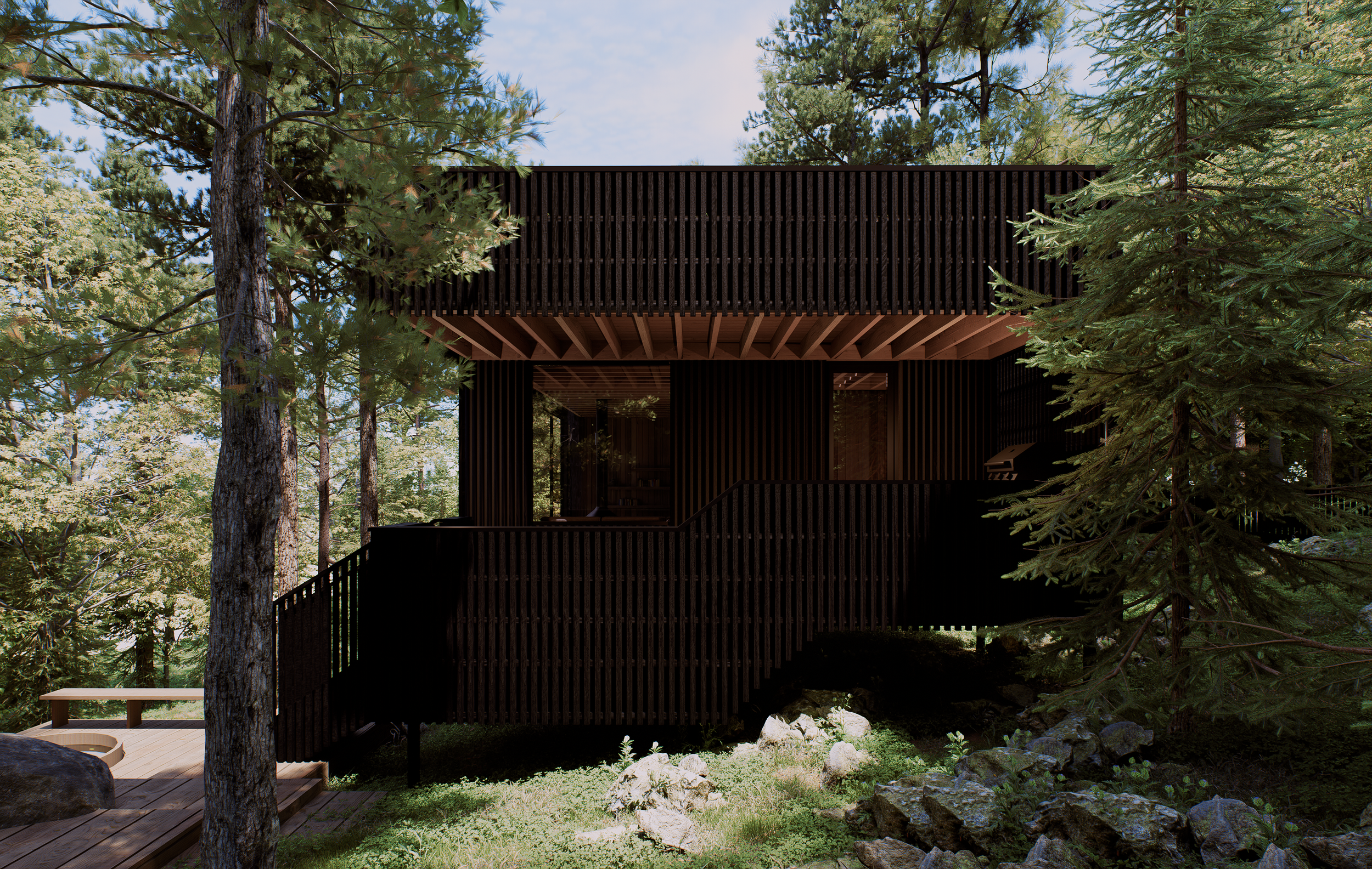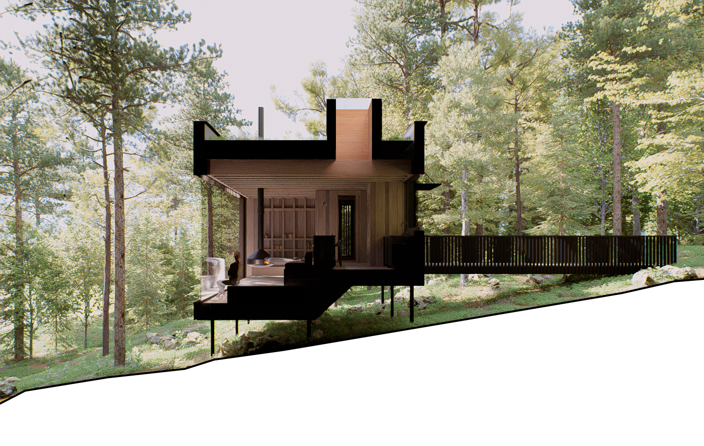 Le projet consiste en la conception d’un chalet écologique compact, durable et performant, d’une superficie d’environ 65 m² et destiné à accueillir deux personnes dans un cadre naturel à Sainte-Adèle dans les Laurentides. L’ambition est de concevoir un refuge cocooning, intime et bien pensé, offrant une expérience immersive en nature tout en minimisant son empreinte sur le site.