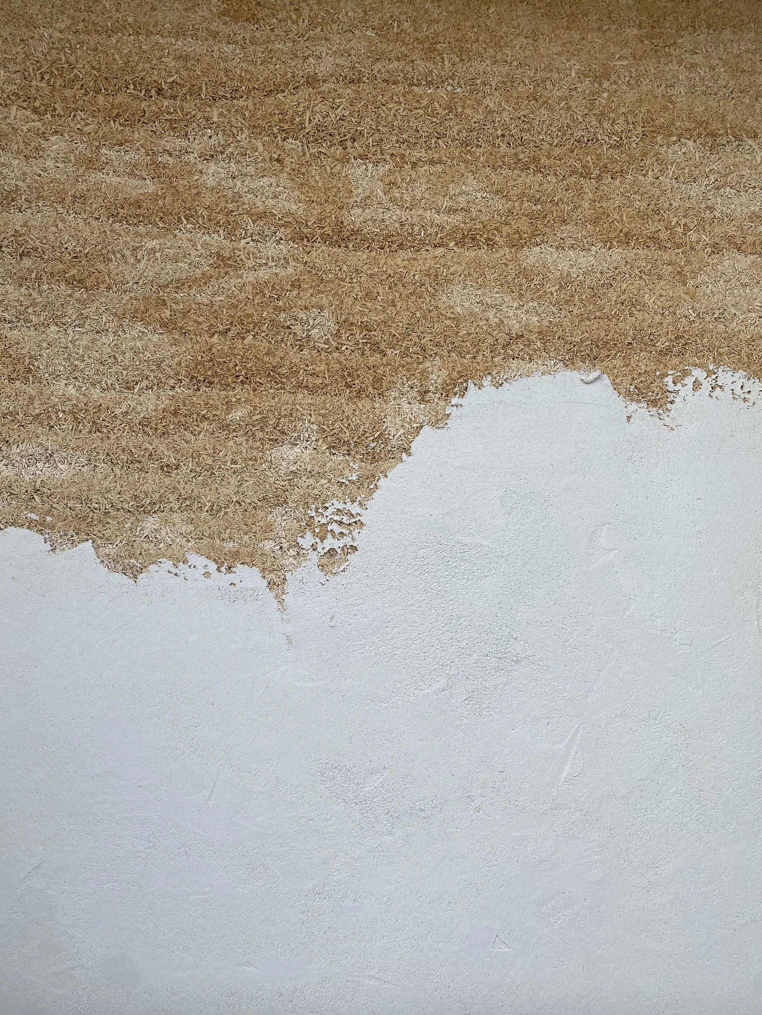 Produit à partir de chènevotte, de chaux et d’eau, ce matériau biosourcé offre une réponse concrète à l’architecture sans plastique, réduisant drastiquement l’usage de membranes synthétiques et de matériaux issus de la pétrochimie. Le béton de chanvre agit comme un isolant à faible conductivité tout en offrant une perméabilité à la vapeur élevée, ce qui permet à l’enveloppe de rester complètement perspirante. Lors de la carbonatation, la chaux capte progressivement le CO₂ atmosphérique, augmentant la dureté du matériau au fil des mois. Dans le contexte actuel, la filière québécoise du chanvre à l’échelle du bâtiment étant encore émergente, le projet illustre l’intérêt de structurer une production locale adaptée à la construction.